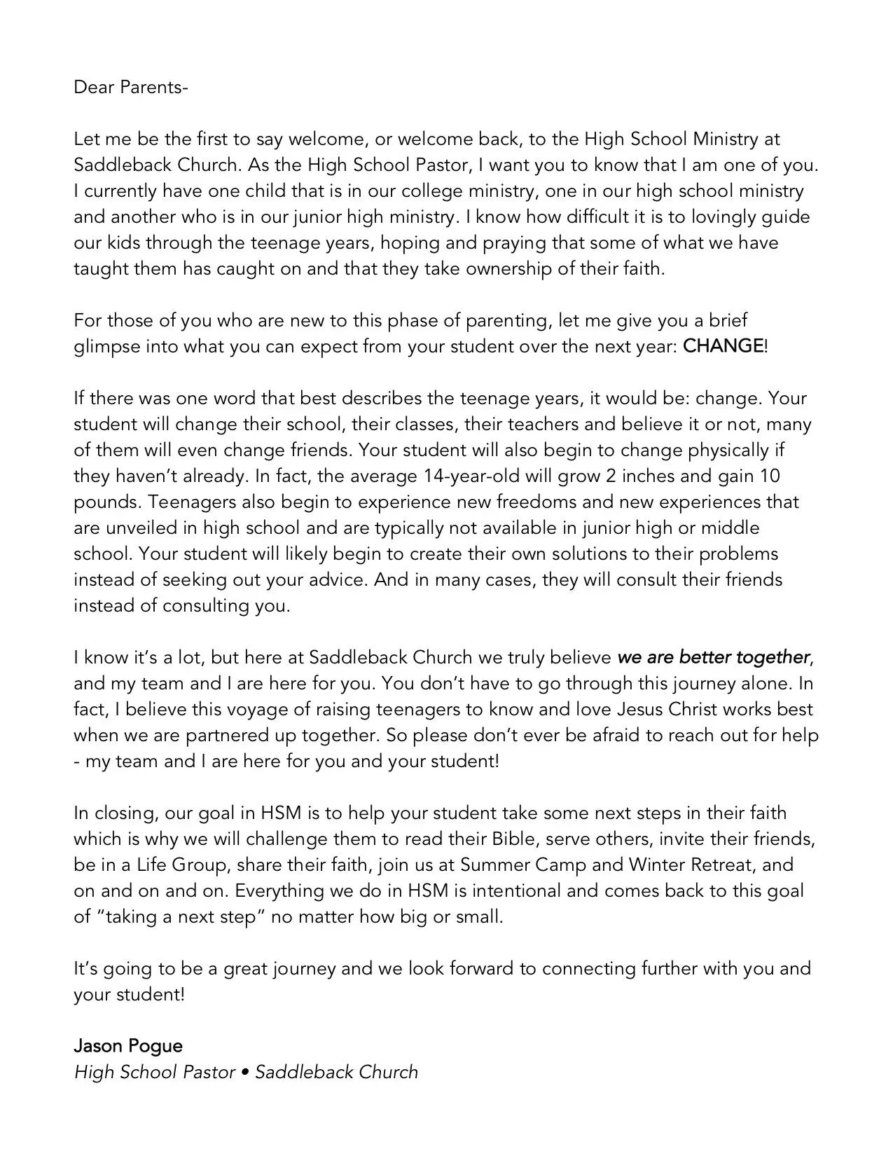 Saddleback parents website